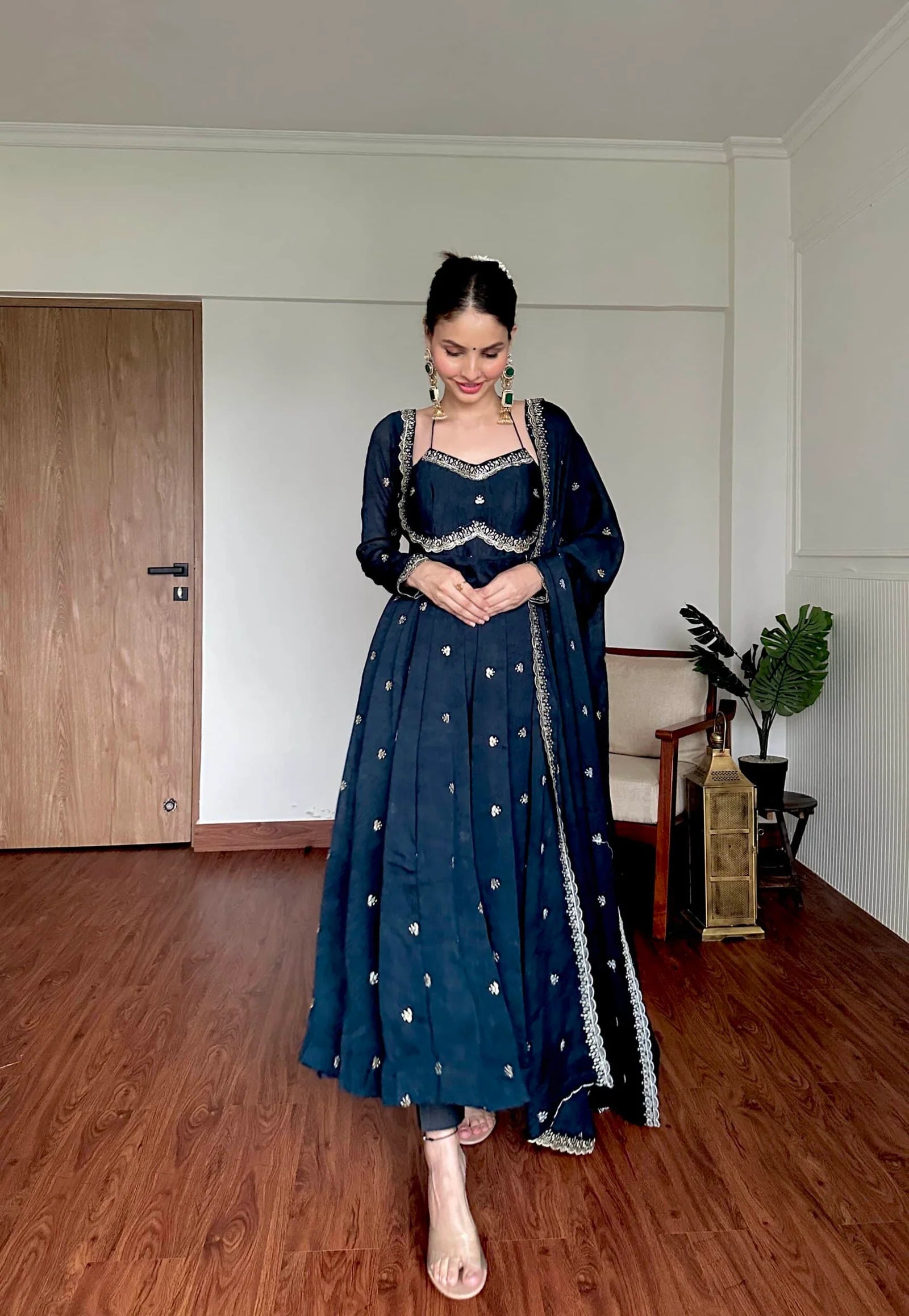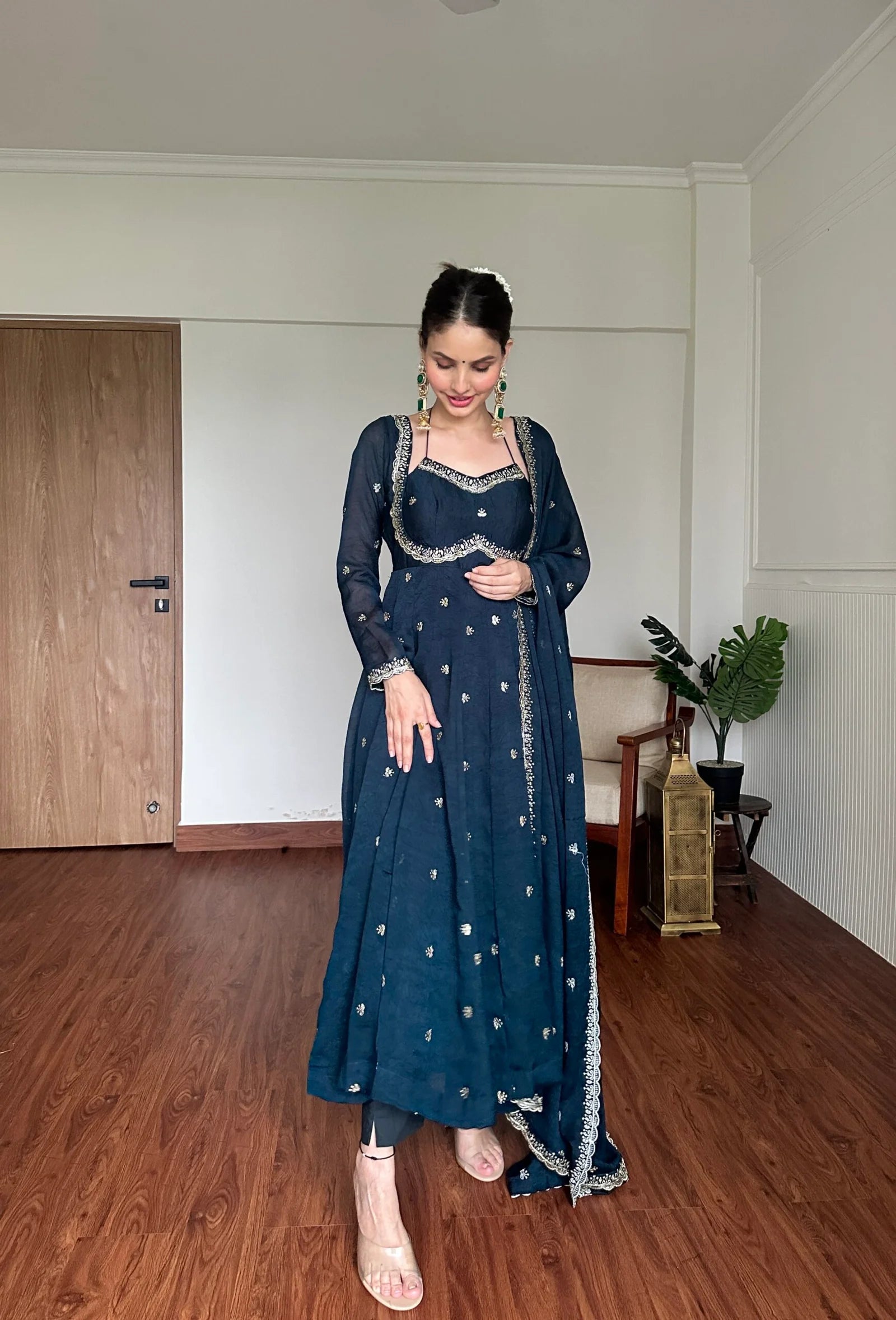 FABRIC & WORK:- Faux Blooming with Embroidery Zari Sequins-work