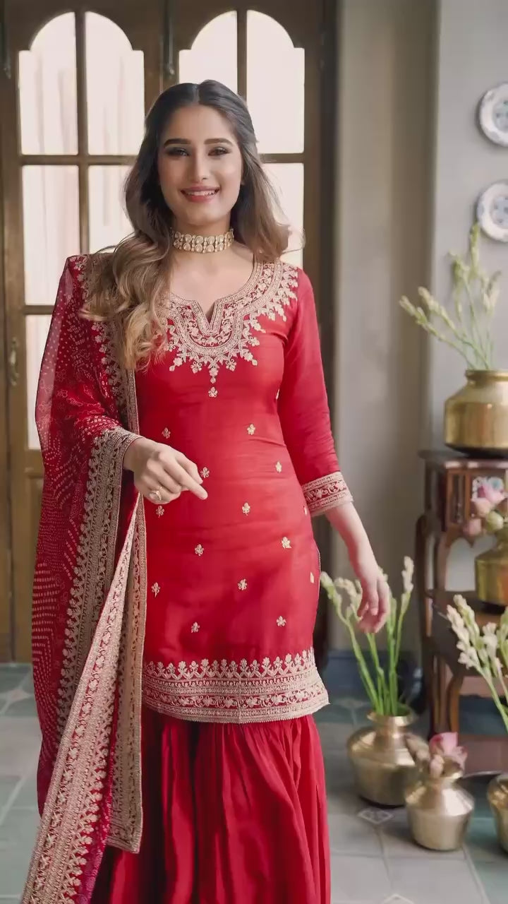 Sarara: Fabric – cosmo Thread with Sequnce with Codding work Length – 38” Dupata-